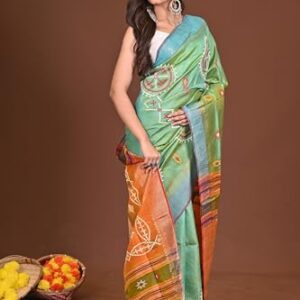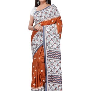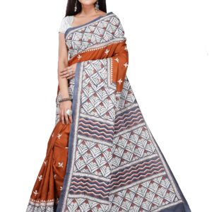 ₹9,999.00Brand: OdiKala Color: coffee color and red Features: VIBRANT DESIGN: This Sambalpuri silk saree features Collecting Mahua flower design...