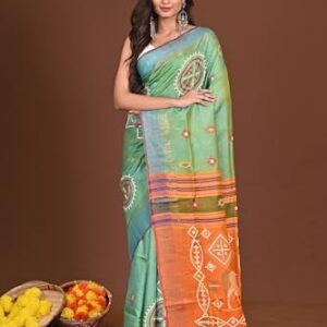 ₹20,000.00Brand: Bengal looms India Weaves of Elegance Color: Ecru White, Green and Multicolored Features: Premium Hand Woven Muslin Silk...