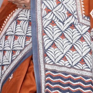 ₹20,000.00Brand: Ruprekha Fashion Color: Rust Features: Pure Bangalore silk hand embroidered kantha stitch saree with running blouse piece Fabric...