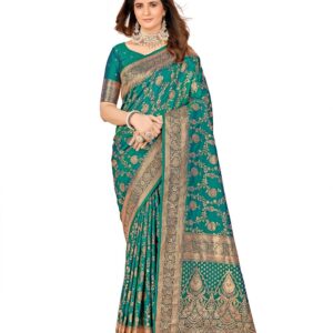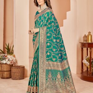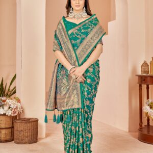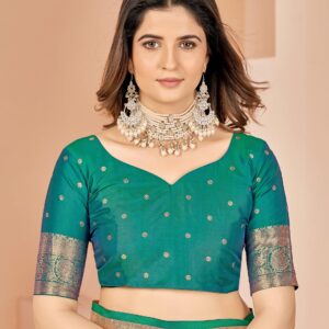 ₹1,200.00Brand: Mehrang Color: Green Features: Saree Color : Green || Blouse Color : Green Saree Fabric : Banarasi Silk...