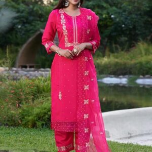 ₹3,000.00Product details Material composition Chanderi Viscose Sleeve type 3/4 Sleeve Length Calf Length Neck style Crew Neck Style Regular...