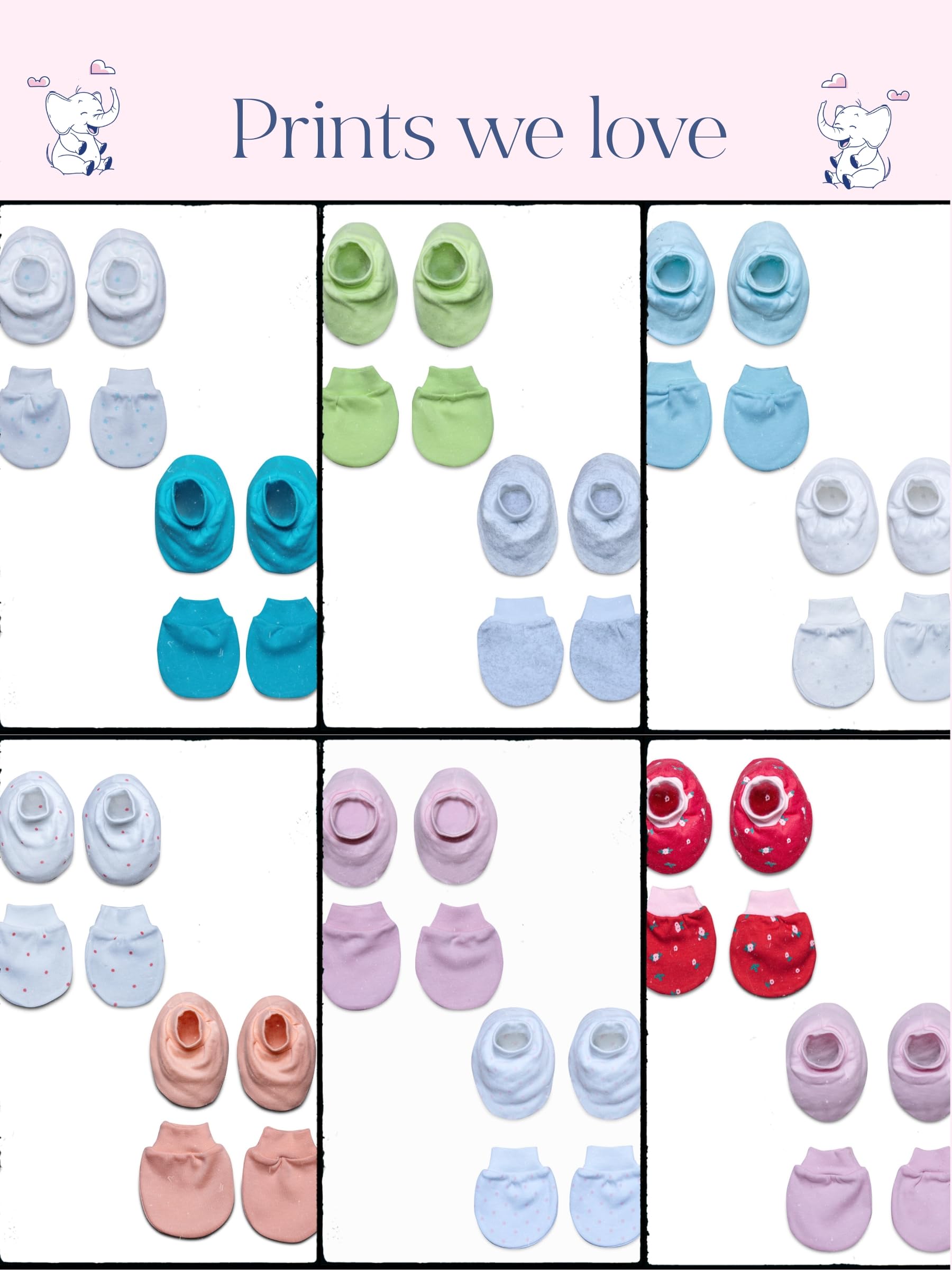 - Complete Newborn Mitten and Booty Set: This set includes 6 pairs of matching mittens and booties, available in various colors and patterns, perfect for everyday use and complementing any outfit.