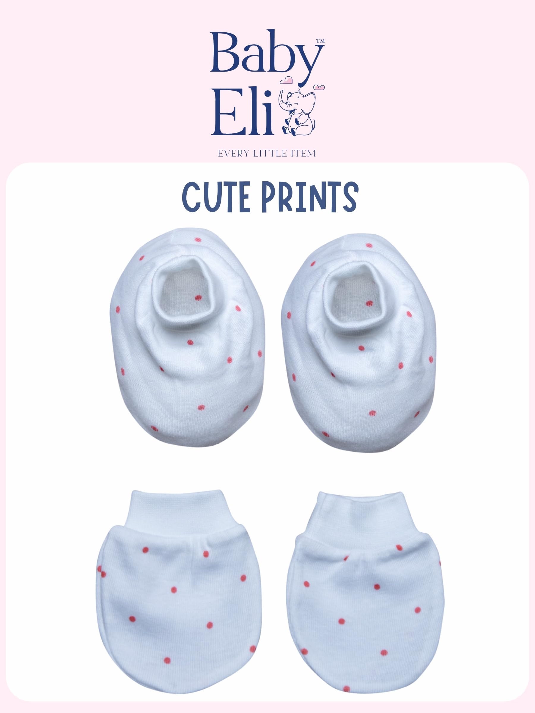 Introducing the Baby Eli Newborn Mittens Bootie (Rib) Set, a thoughtfully designed mitten and bootie set tailored for your newborn baby’s comfort and safety. These newborn mittens are crafted from high-quality, breathable cotton, ensuring they are soft on your baby’s delicate skin. Our mitten sets are perfect for protecting your baby’s hands from scratches while keeping them cozy and warm throughout all seasons, whether it’s a sunny day, rainy evening, or chilly night. This mitten set for new born baby includes a combination of mittens and booties, making it an ideal choice for newborn mitten needs. The baby mittens set 0 to 6 months features stretchable, breathable fabric that is gentle on sensitive skin and suitable for both boys and girls. Baby Eli mittens for new born baby 0-6 months come in delightful patterns and colors that perfectly complement other baby accessories, like caps and socks. Designed for infants, these baby gloves and socks new born are easy to wear, stay securely in place, and offer maximum comfort for your little one. The Baby Eli mitten new born baby set is a perfect addition to your baby’s wardrobe or as a thoughtful gift for new parents. The set includes white mittens baby and a matching mitten socks set that’s practical and stylish. Our infant socks mittens are lightweight, travel-friendly, and easy to carry, making them a convenient choice for parents on the go. Whether you need a mitten new born baby set for daily use, sleeping, or travel, Baby Eli has you covered. The mitten bootie set is durable, machine or hand washable, and ideal for newborn baby mitten needs. Trust Baby Eli’s mitten set newborn collection to give your baby the warmth, comfort, and care they deserve, ensuring every day feels like a baby hug mittens newborn. This mitten and bootie combo is not just functional but also an adorable addition to your baby’s essentials, making it a smitten baby moment for every parent!
