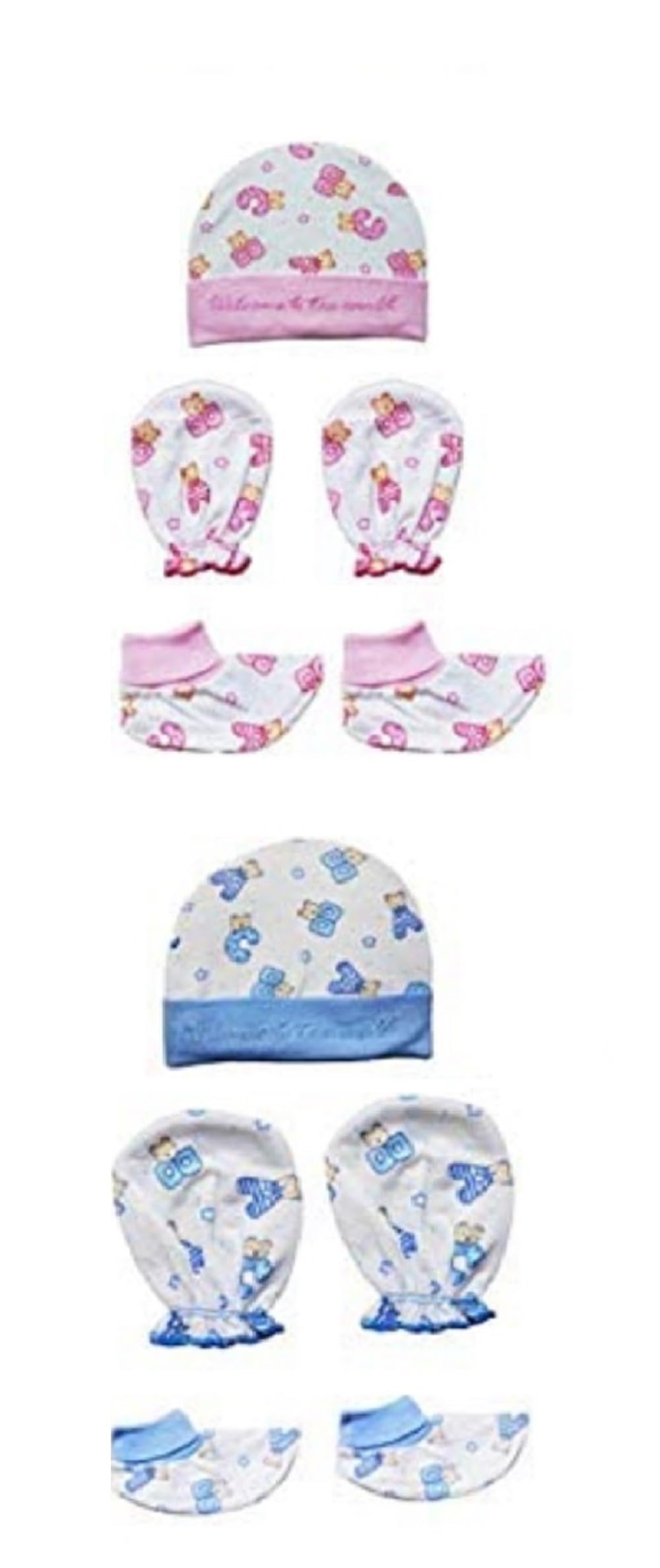 - Pack of 2 Sets – Cap Mitten Booty -Created Using The Finest Cotton Which Means They Are Soft, Free From Harmful Color Chemicals And Super Absorbent. Safe and Irritant-Free-For Your Babies Sensitive and Tender Skin.