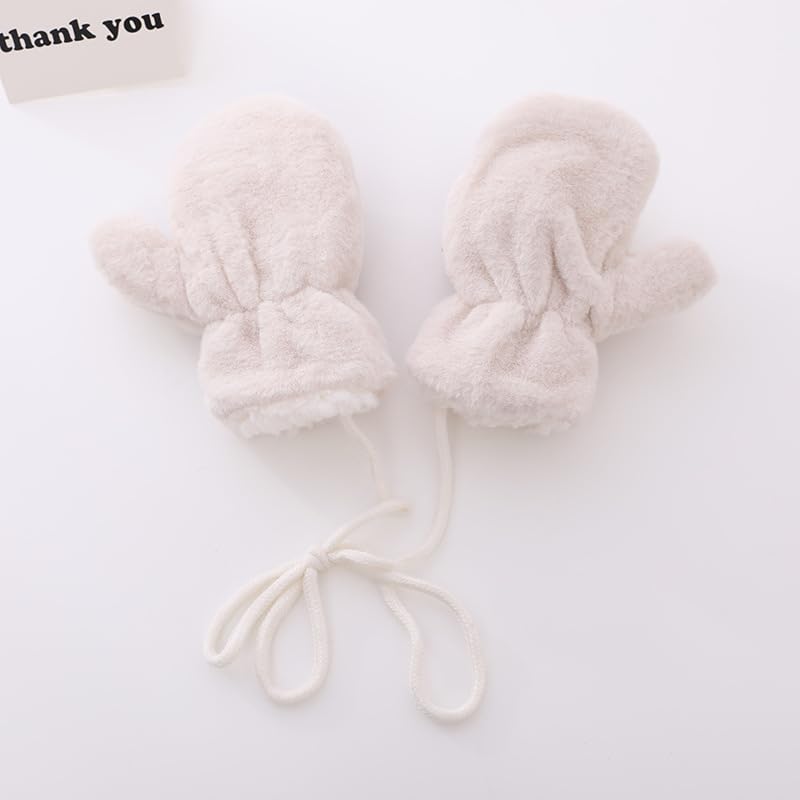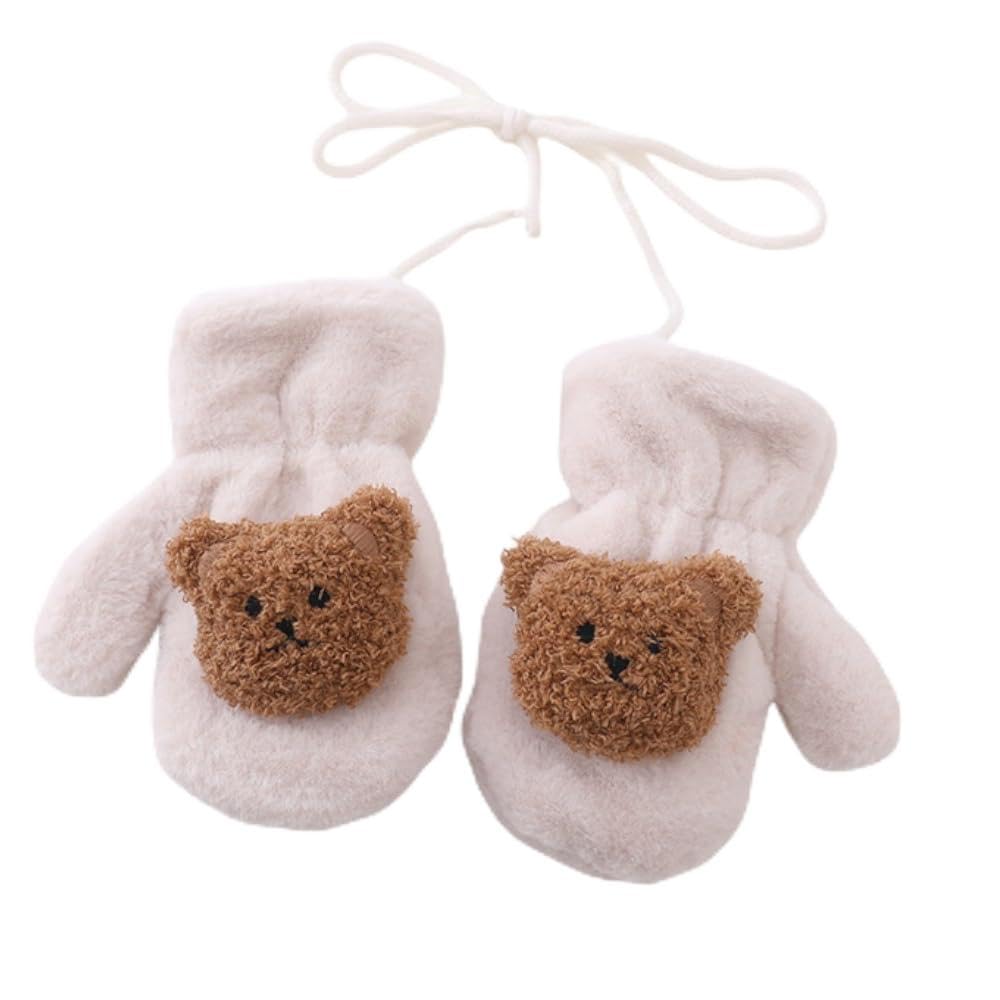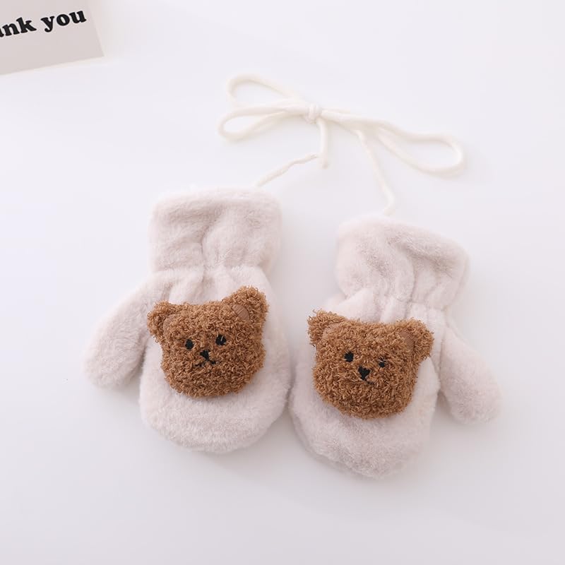 Baby Bucket Plush Cartoon Winter Gloves for Children, Infant Boys & Girls, Warm Fleece Mittens with Laces, Perfect for Toddlers-1 Pair-(Cream) In Stock