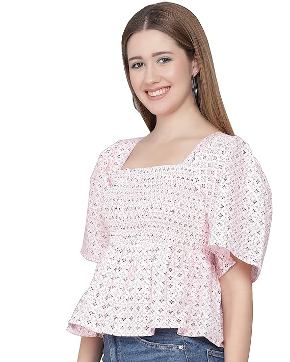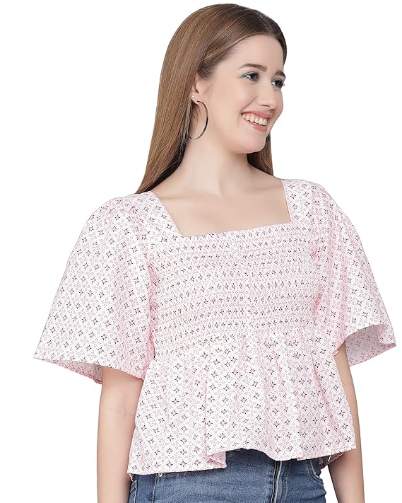 - This Top is made with extreme care in terms of quality and design crafted to perfection to suit all your needs, it features smocked bodice, a Butterfly sleeves, and a Square Neck.