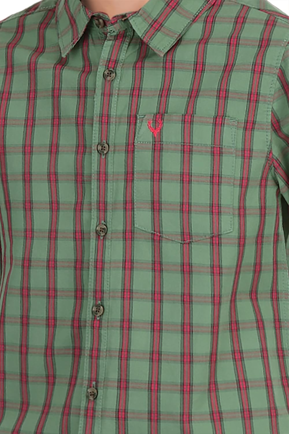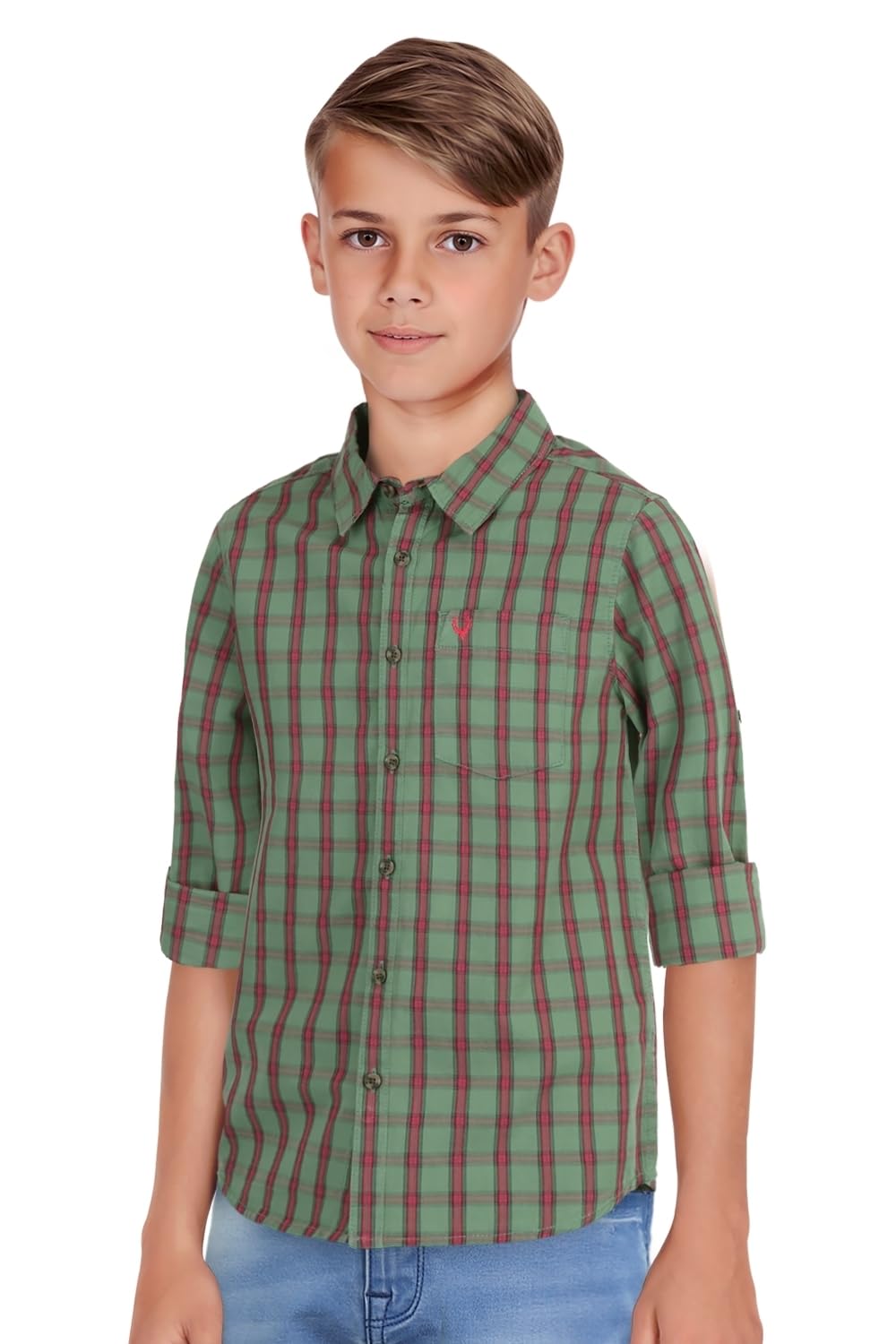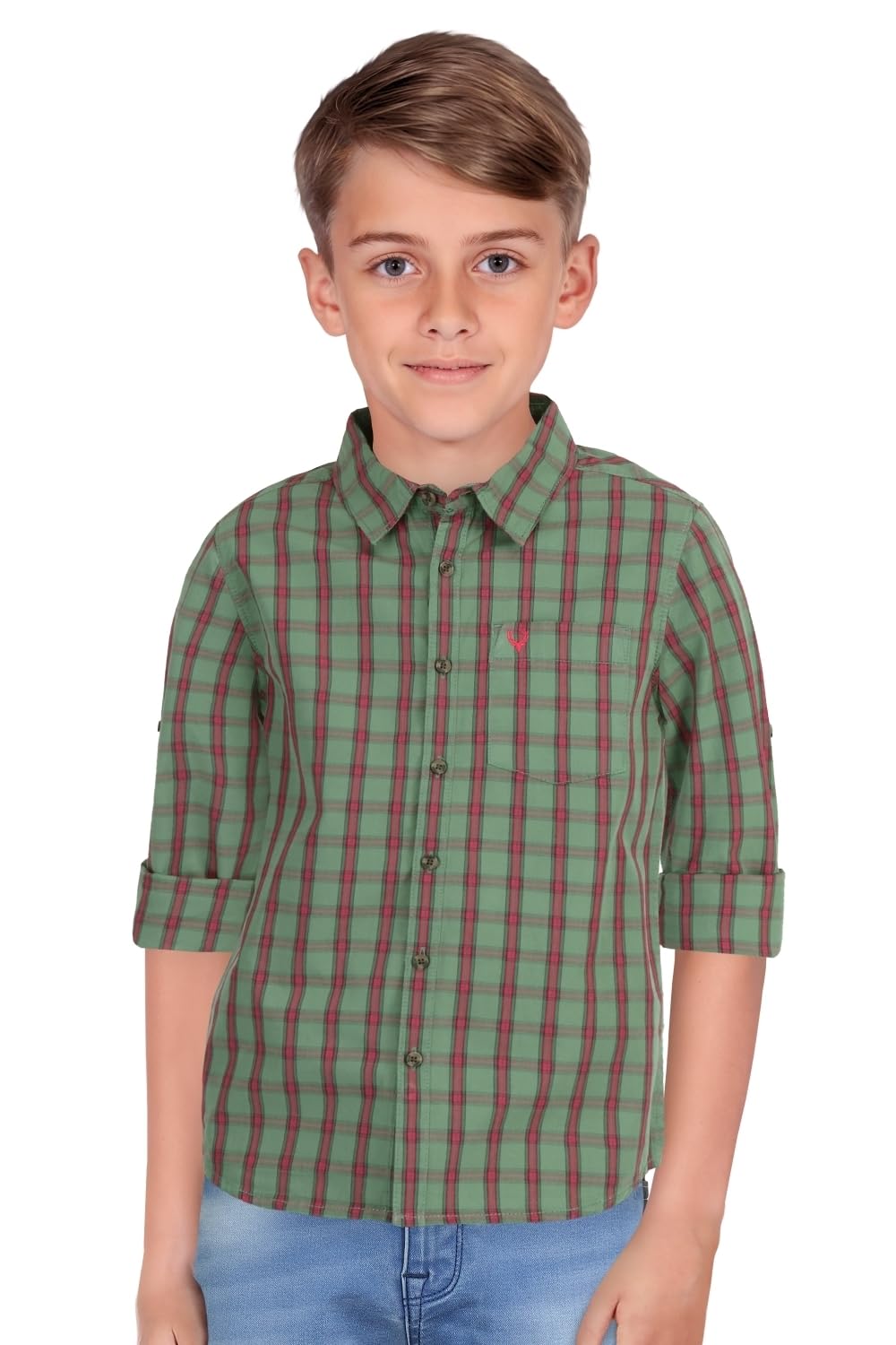 Get the perfect mix of style, comfort and cuteness for your champ in this Green Check shirt from Allen Solly Junior.