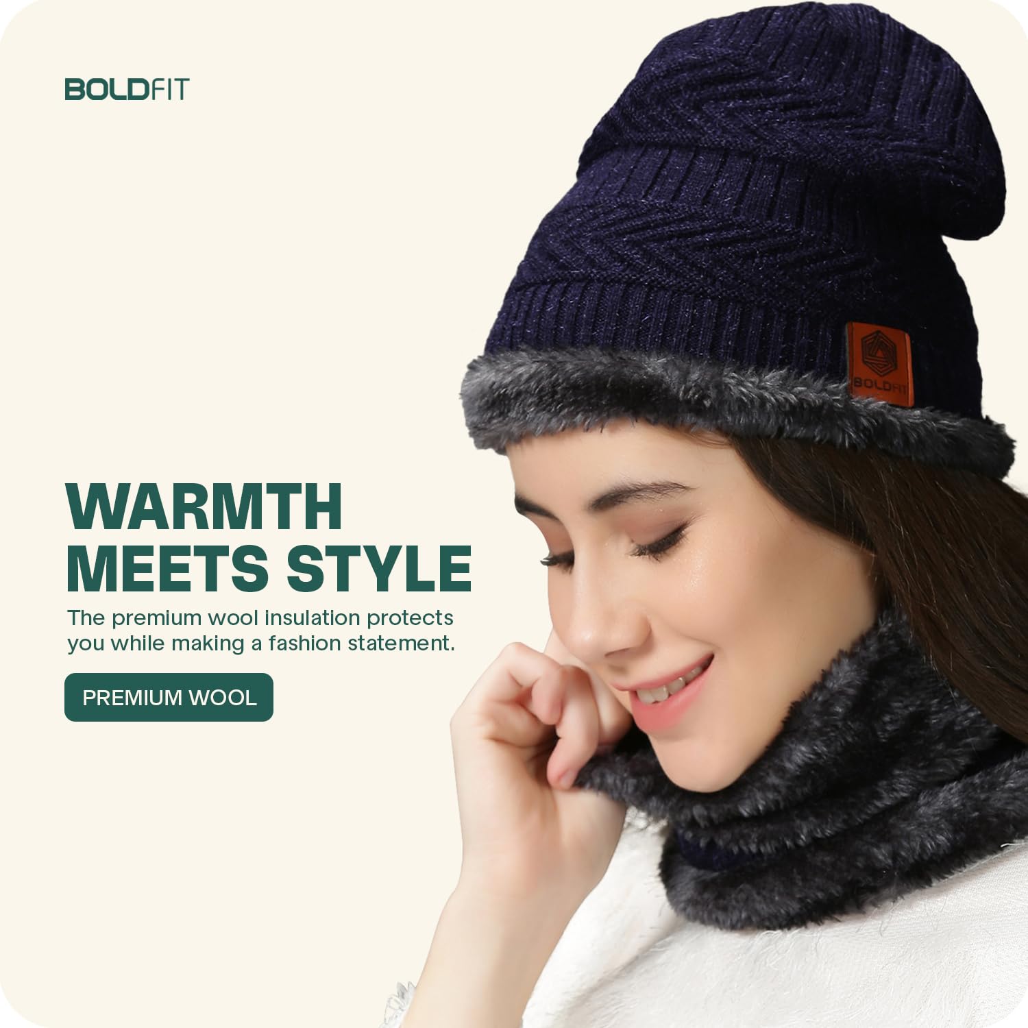Details: Neck and collar support woolen cap set with gloves and cap