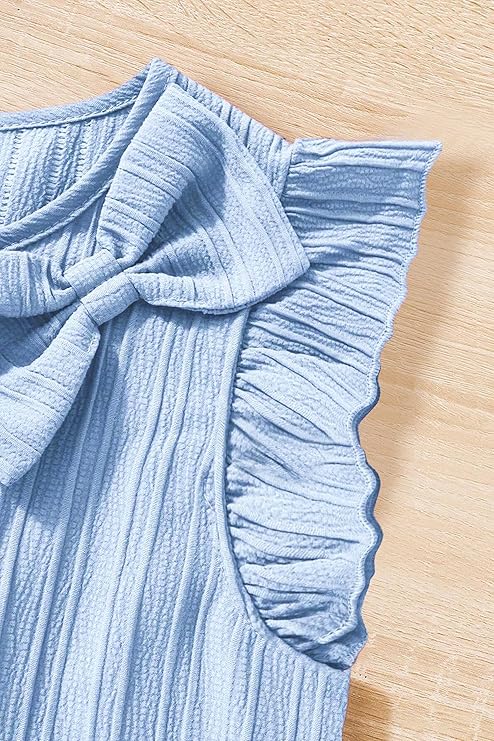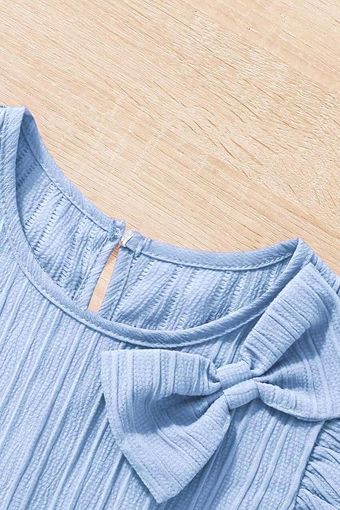 - Neck: Round neckline, Sleeve: Short Flutter Sleeve