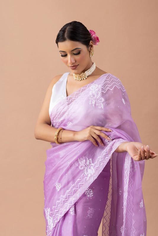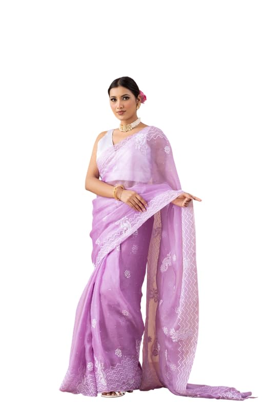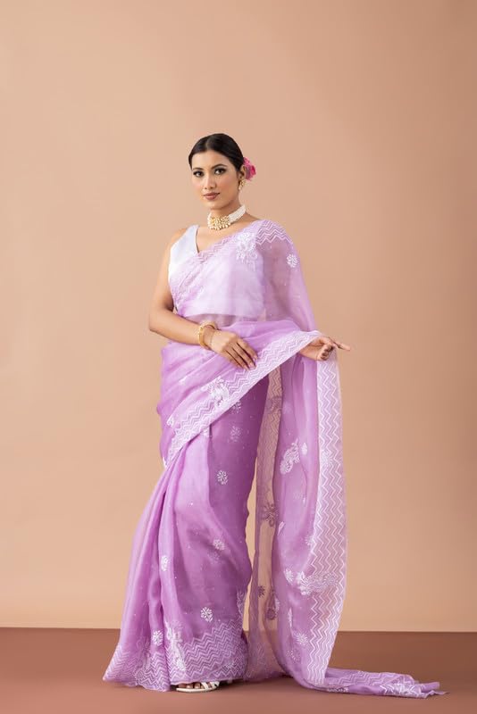 - Elegant Ethnic Wear: Fibreworld Mauve Organza Saree crafted for women who love traditional Indian attire with a modern, lightweight feel.