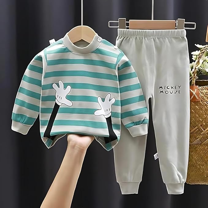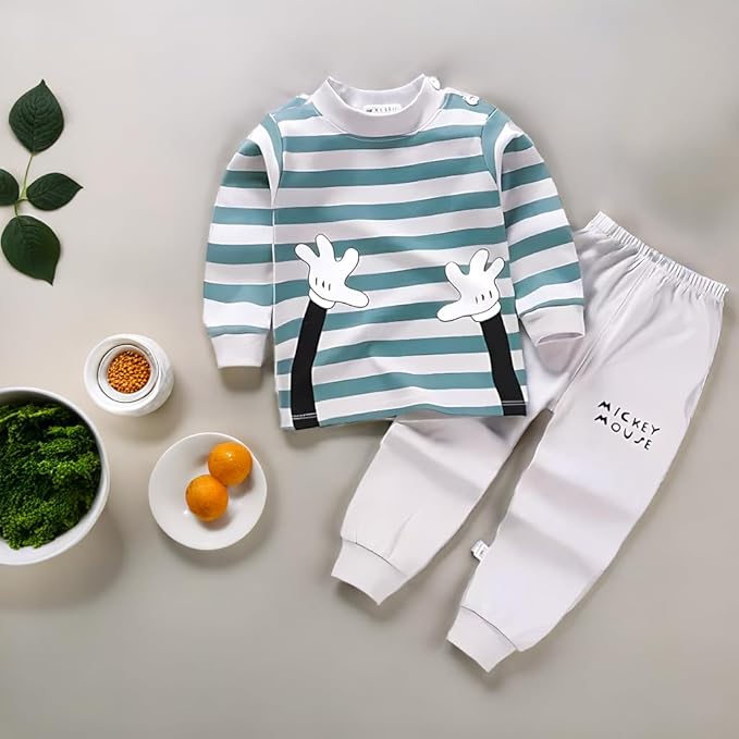 - Crafted with care, this kids dress for boys offers durability and style, making it a go-to choice for parents seeking quality kids wear. The striped T-shirt and pyjama combo are ideal for active kids on the go.