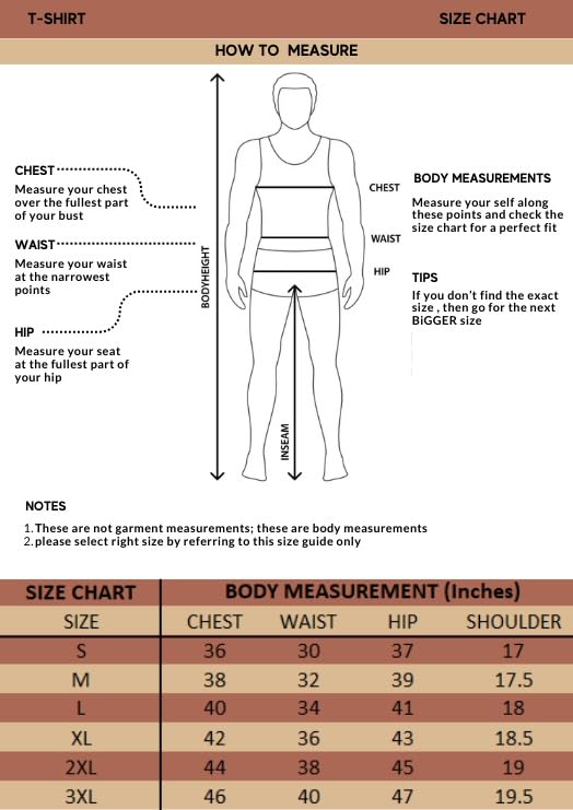 - Size Recommendation: Please refer to the size chart Whether you prefer a t-shirt for men with full sleeves or a casual t-shirt for men, we have the perfect size for you