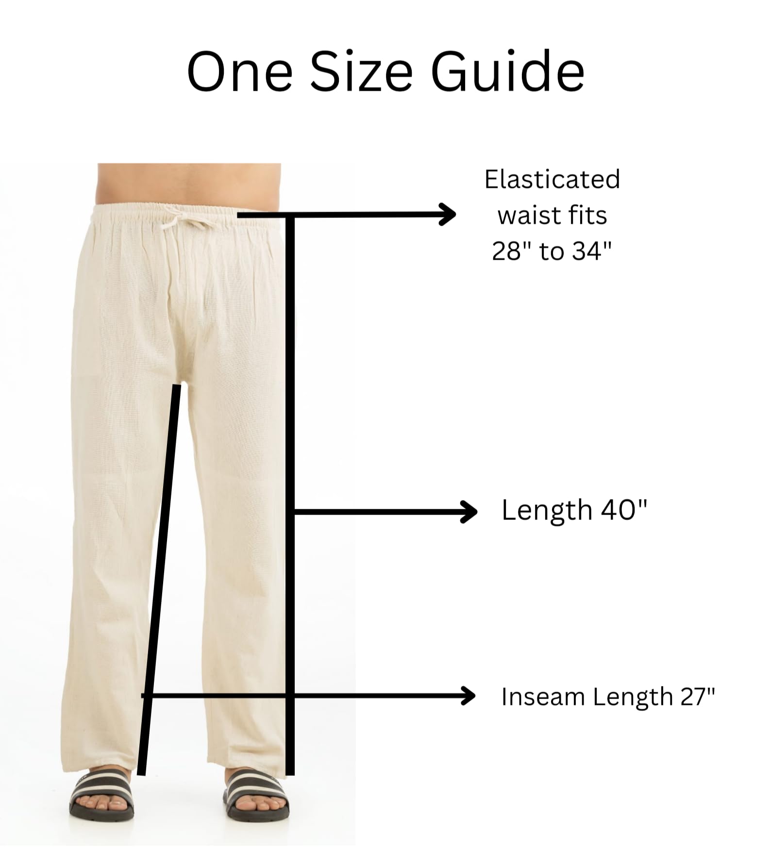 - Relaxed Fit Cotton Pajama for Men : One size fits most with a relaxed silhouette suitable for waists ranging from 28 to 34 inches.