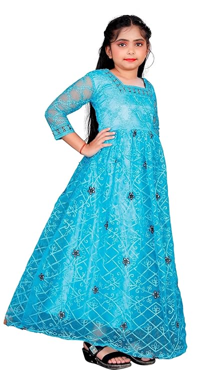 KV FASHION Girls Net Embroidered Gown Dress (K Aliya-New) In Stock