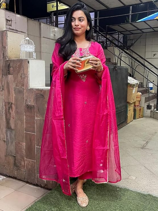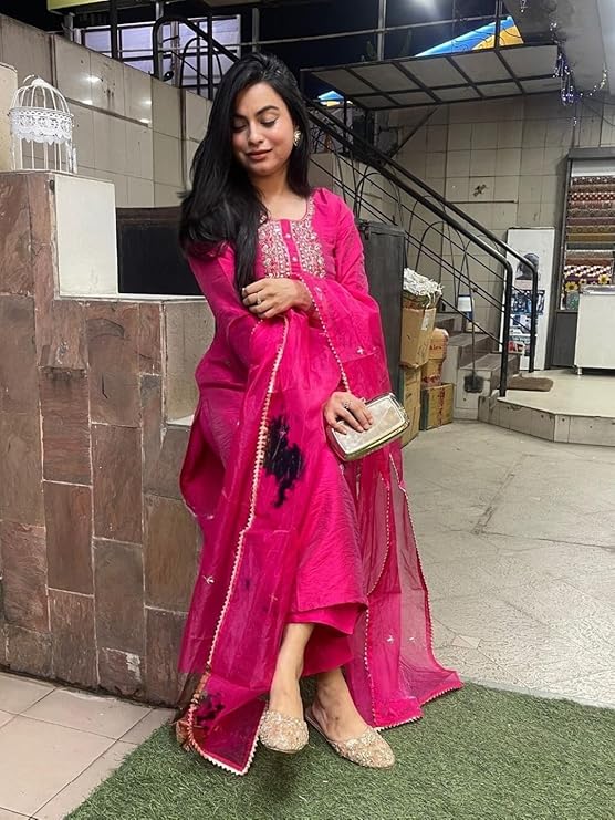 - Kurta Fabric:- Chanderi Viscose || Bottom Fabric:- Chanderi Viscose || Dupatta Fabric:- Pure Organza
