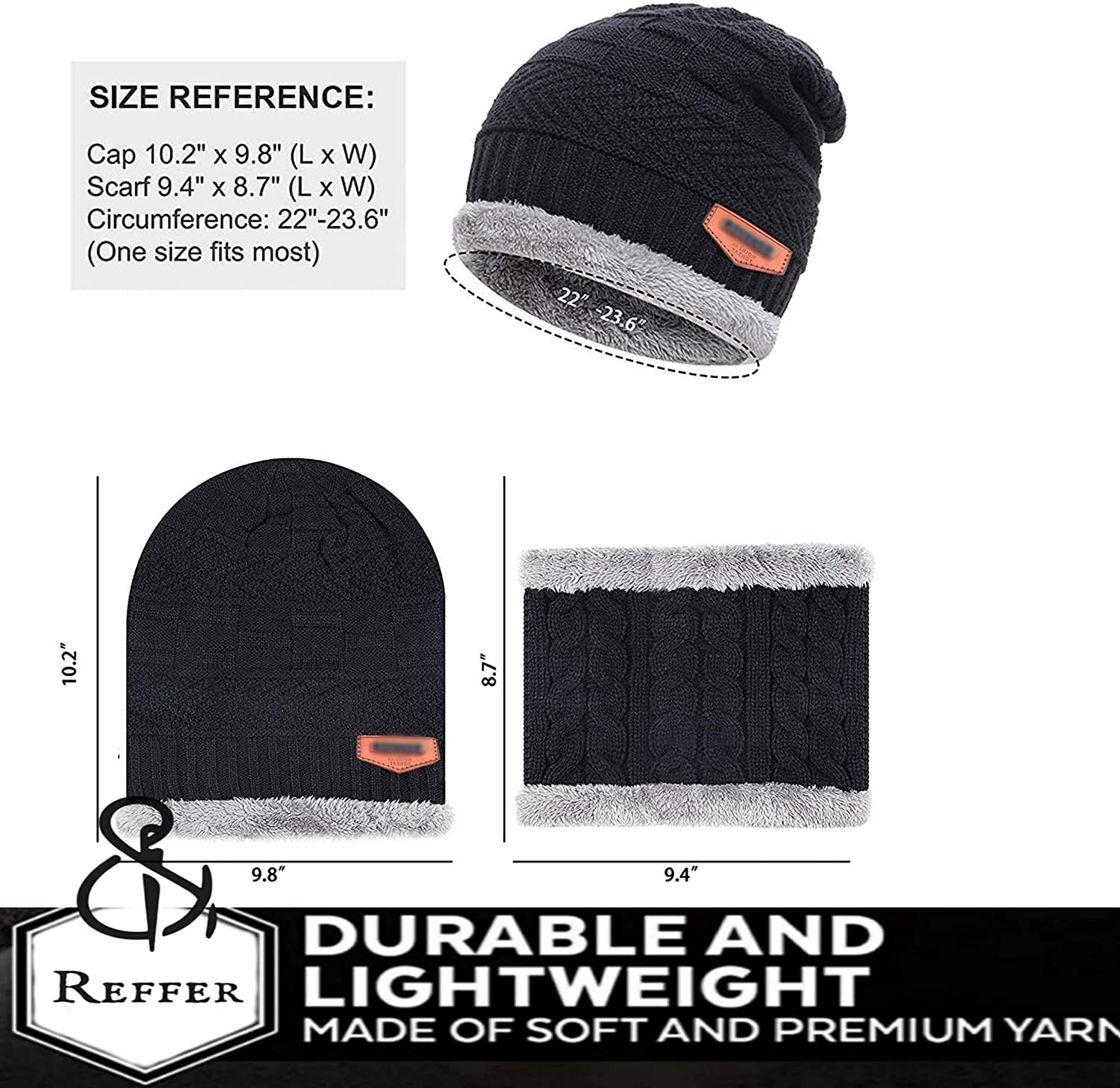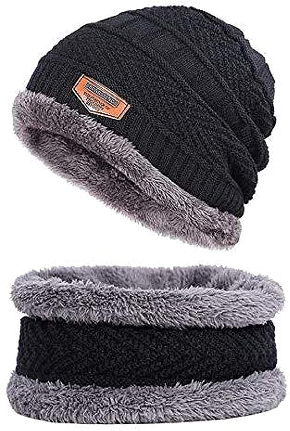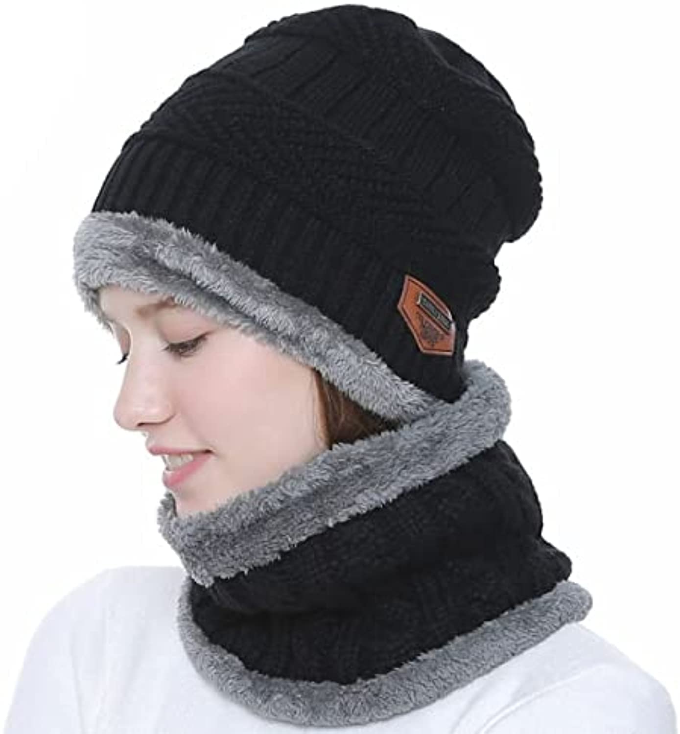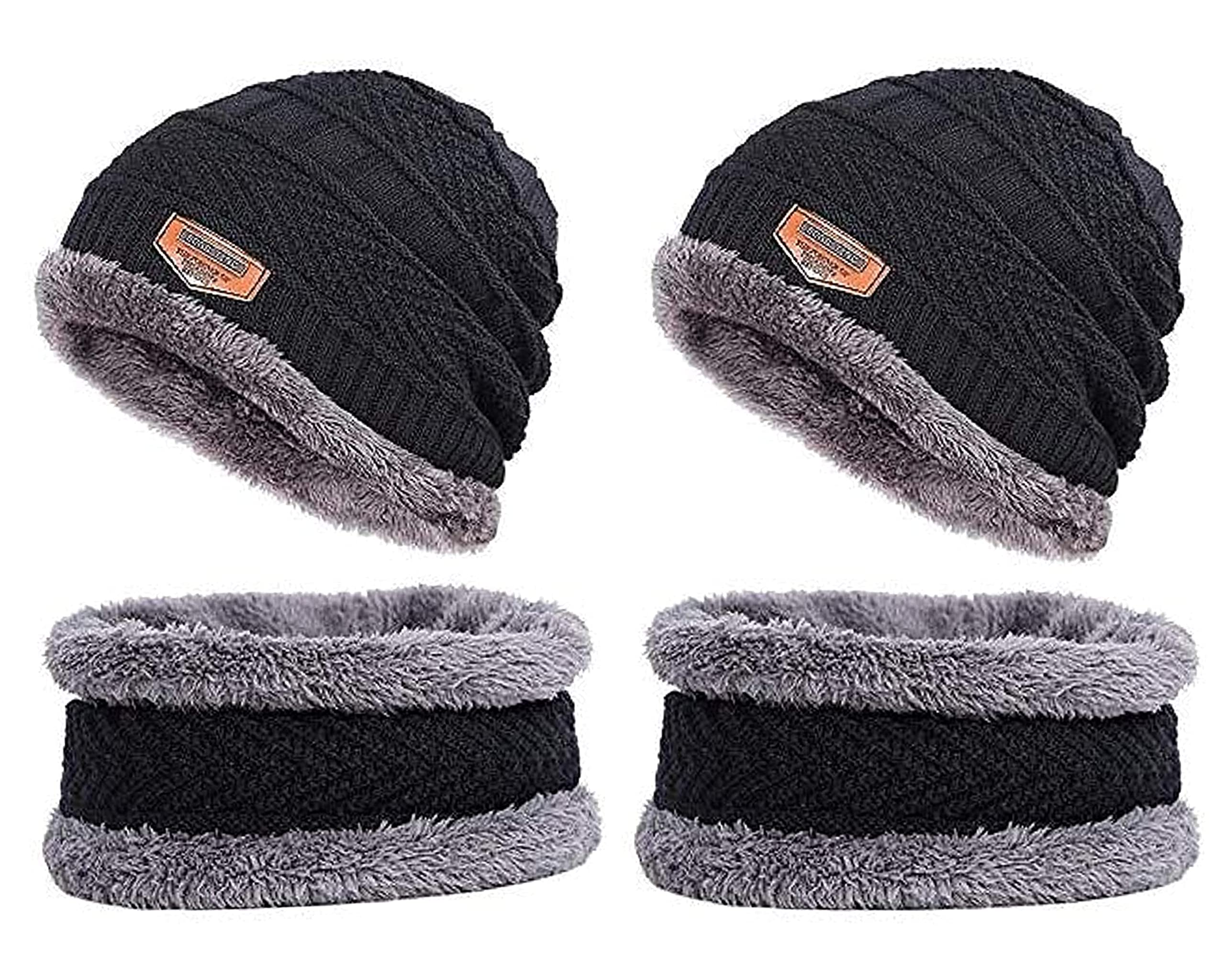- Pack of 2 Caps and 2 Neck Warmers;Material: Premium quality stretchy, thermal spun acrylic. The inner is made of artificial wool. Very soft and cozy, hand-knitted feel, close to the skin, giving you lasting warmth and softness