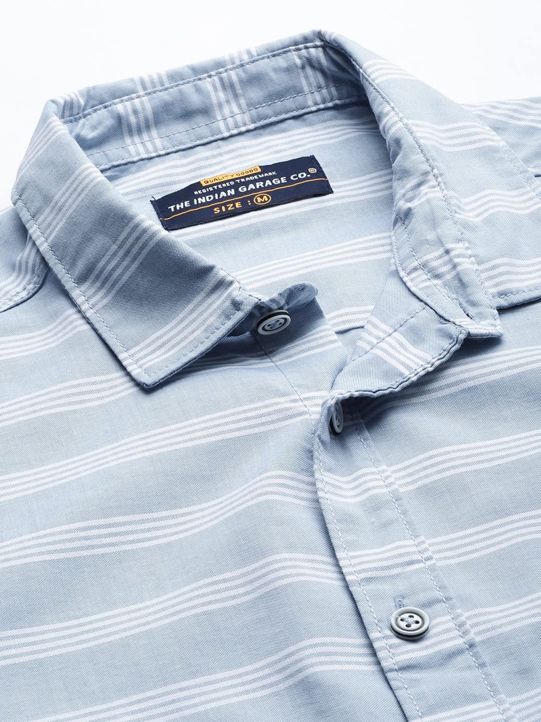 - Fashion : The Indian Garage Co, Men, Slim Fit, Striped, Casual Shirt, is designed with versatility in mind, and can be paired with a variety of items to elevate your look. For a casual day out, consider pairing a classic Casual Shirt with denim jeans or shorts and your favorite sneakers. If you’re looking to step it up a notch, try tucking Shirt into a cargos, chinos or trousers, and complete the outfit with boots for a more polished appearance.