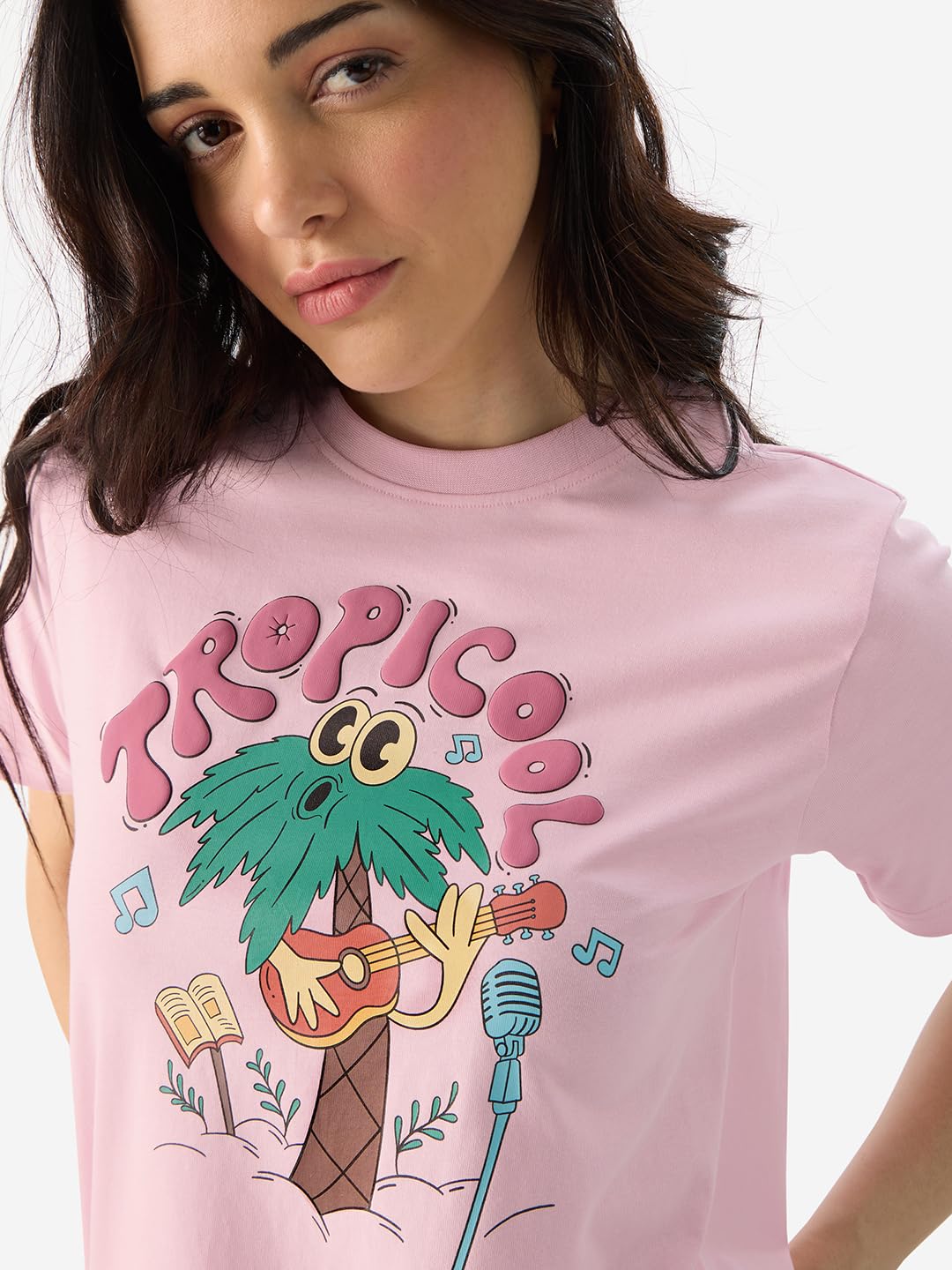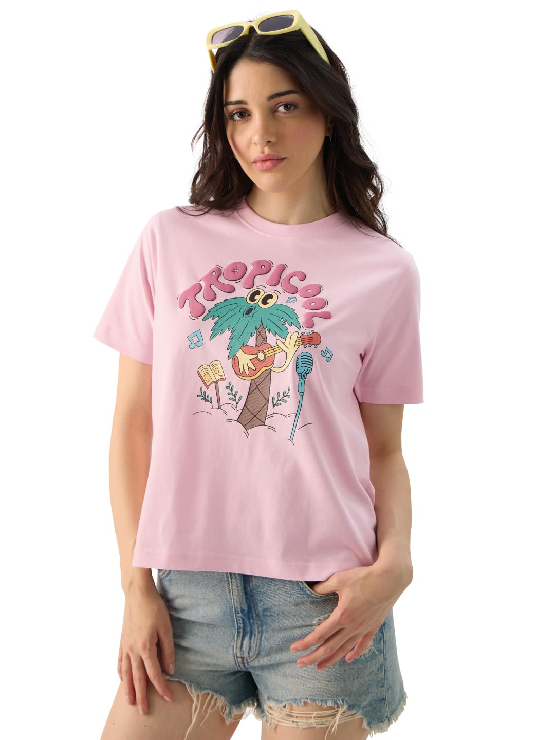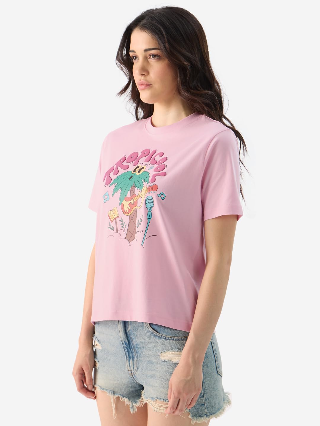 The Souled Store Tropicool Women and Girls Short Sleeve Round Neck Pink Graphic Printed Cotton Regular Fit T-Shirts In Stock