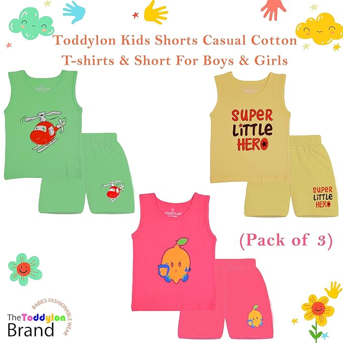 - STYLISH & COMFORTABLE — The perfect tshirt & short sets for your little baby boys and baby girls that will make them look stylish & cute while still being comfortable. Let your outfit be sorted for all season. A charmingly trendy look awaits your little one on the other side of wearing this outfit. Dress up your young boy/girl in this sleeveless t-shirt and shorts set.