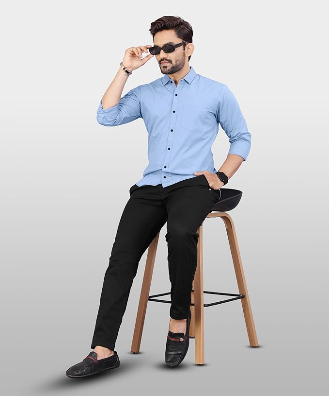 - ✨ VERSATILE STYLE: This solid Sky Blue shirt is perfect for casual outings, office wear, and semi-formal events, making it a versatile addition to any wardrobe.