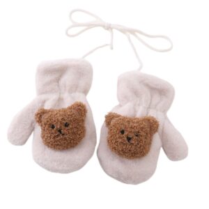 Baby Bucket Plush Cartoon Winter Gloves for Children, Infant Boys & Girls, Warm Fleece Mittens with Laces, Perfect for Toddlers-1 Pair-(Cream)