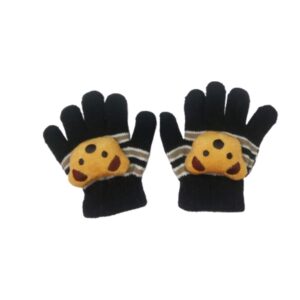 Fashion Sutra 1Pair Acrylic Woolen Winter Gloves for Baby Girls & Baby Boys Toddler Cute Teddy Design Gloves (Black,1-3 Years Old)