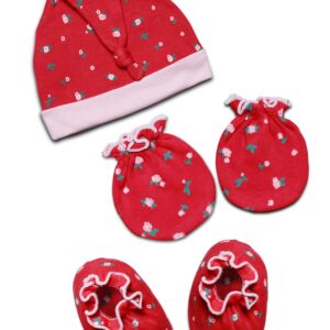 Baby Eli Newborn Premium Cotton Knotted Cap Mitten Booty Set for Baby Boy & Baby Girl (White & Red, 0-12 Months)