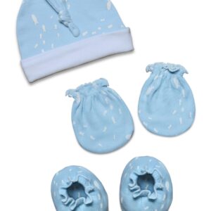 Baby Eli Newborn Premium Cotton Knotted Cap Mitten Booty Set for Baby Boy & Baby Girl (Blue & White, 0-12 Months)