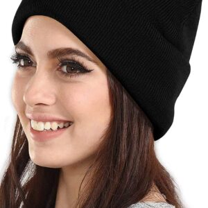 DIGITAL SHOPEE Plain Winter Woolen Wind and Snow Proof Knitted Beanie Uncle Skull Cap for Men’s and Women’s- Free Size, Black