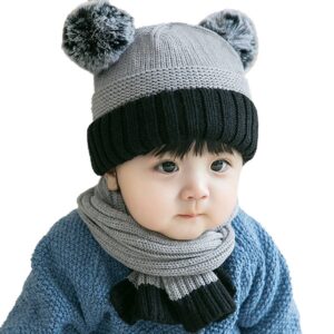 FabSeasons Kids Winter Skull/Beanie caps with scarf Set, fits for 6 Months – 3 Years Old Baby Boys & Girls/Toddler