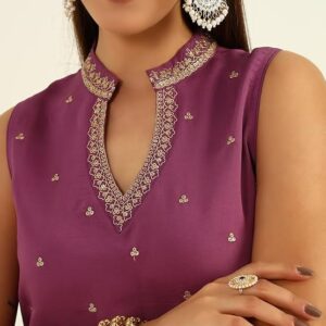 ₹500.00Product details Material composition Viscose Chanderi Length Knee Length Sleeve type Sleeveless Neck style V Neck Style A-Line Material...