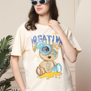₹1,500.00Brand: Fabflee Color: Cream & Sky Blue Features: ✅ SOFT FABRIC:The Oversize T-Shirt For Women Made Of 99.99 %...